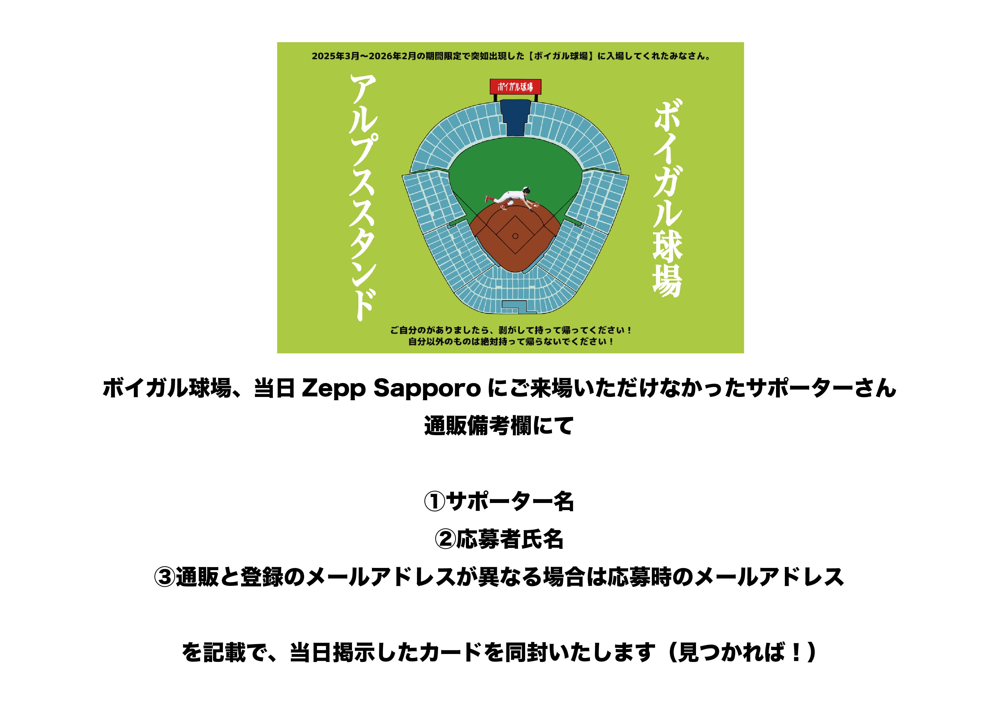 Zepp Sapporo公演、ボイガル球場サポーターの皆様で